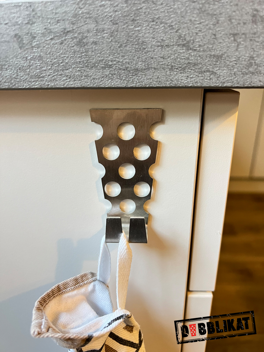 Der Dubblikat Handtuchhalter aus Edelstahl wurde so konzipiert, dass er sowohl wie ein gewöhnlicher Handtuchhaken verwendet werden kann oder als Handtuchklemme dient. Durch die Materialstärke von 1,5 mm ist er sehr Formstabil und verbiegt sich auch nicht, wenn nasse Handtücher daran hängen. Er hat auf der Rückseite eine selbstklebende Fläche und kann daher ohne zu bohren angebracht werden.
