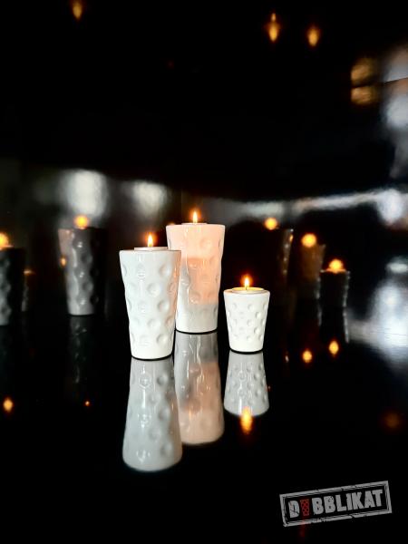 Die Dubblikat Teelichthalter aus weißer Keramik vereinen das Pfälzer Dubbeglas mit moderner Ästhetik. Die glatte Oberfläche mit ihren Dubben verleiht jedem Stück eine besondere Haptik.