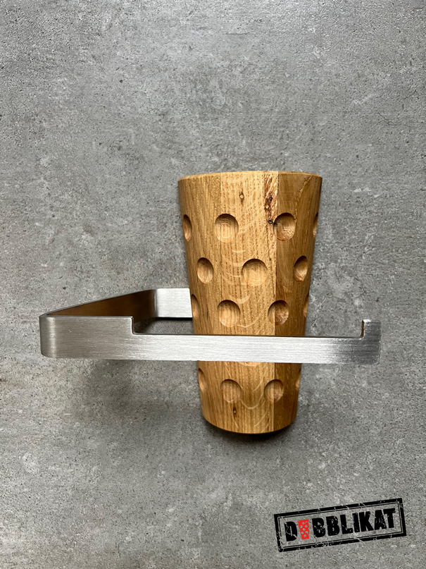 Der Dubblikat Toilettenpapierhalter vereint das Dubbeglas-Design mit natürlicher Ästhetik. Der Halter besteht aus einer 4 mm starken Edelstahlaufhängung, die minimalistisch geformt ist und schwebend an der Wand wirkt. Ein Blickfang für jedes Badezimmer oder Gästetoilette.